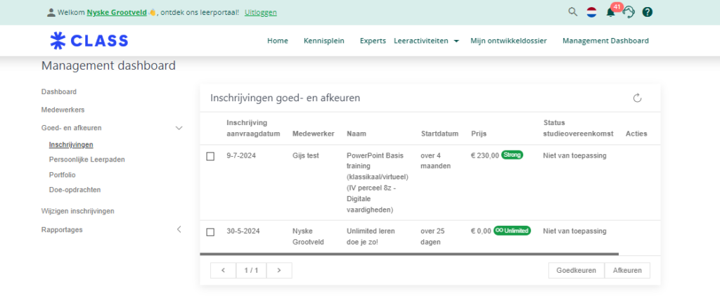 Goed te keuren unlimited inschrijving herkenbaar op management dashboard